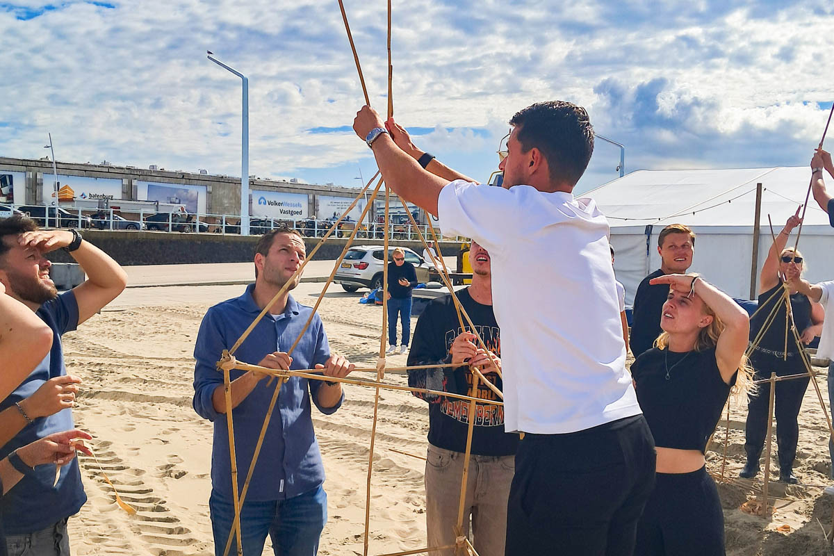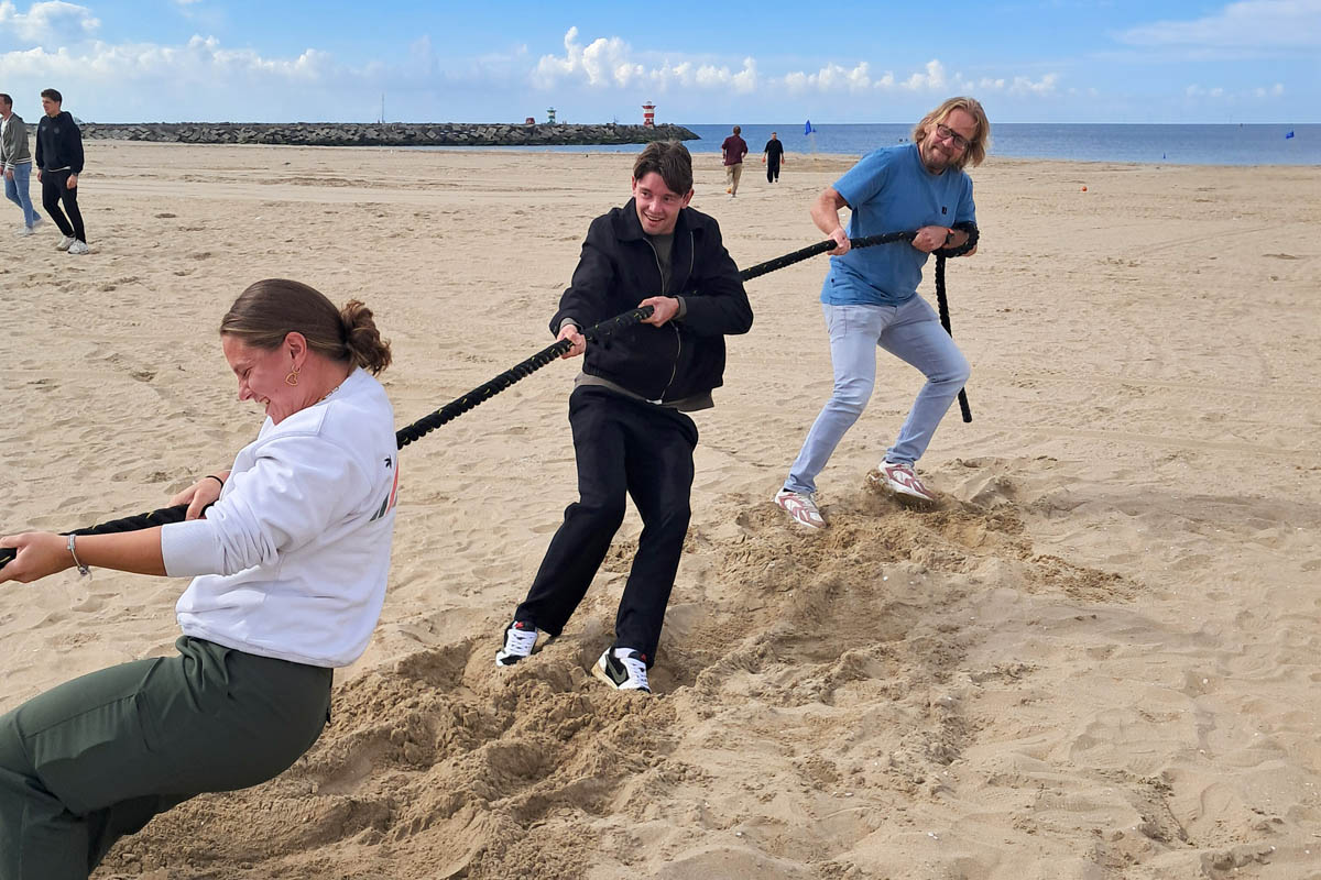 Het zonnetje werkte mee, de sfeer zat er goed in en zo groeide de middag uit tot een ideale teambuilding-activiteit. Na alle strijd en zand in de schoenen werd er afgesloten zoals het hoort, op het terras.