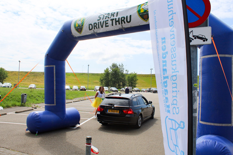 Vrolijke gezichten en volgepakte wagens na geslaagde drive-thru