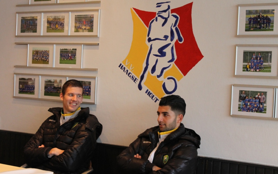 Michiel Kramer en Mitchell de Vlugt op bezoek bij vv Haagse Hout